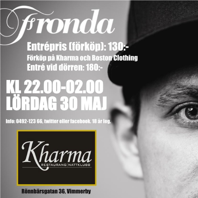 Succén med konserter på Kharma fortsätter. Nu är det dags för en av svensk hiphops allra största, Fronda, som kommer med nya fullängdsalbumet "Vintervägen" i bagaget. DJ på nattklubben och erbjudanden i baren.
